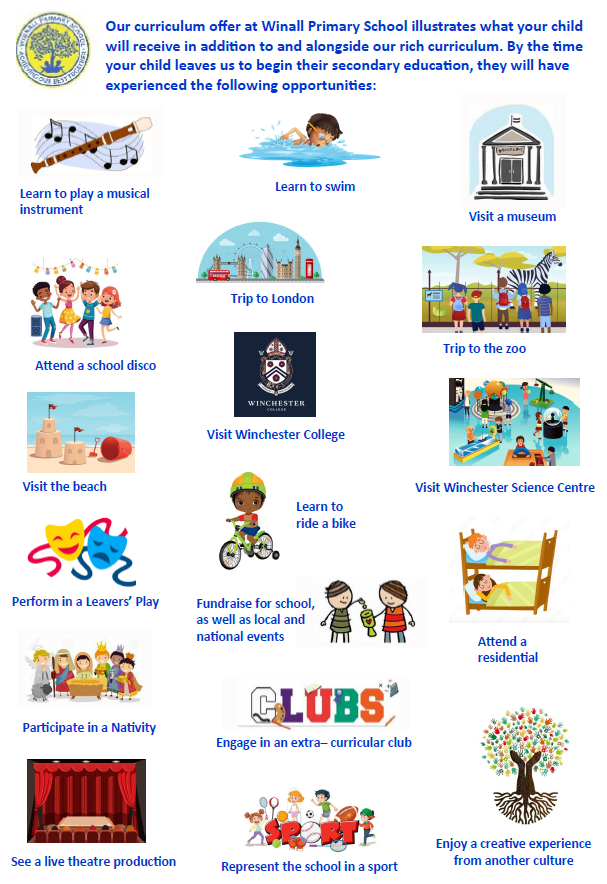 - Educational visits, visitors and a variety of experiences delivered at school to enhance the curriculum experience and increase cultural capital.