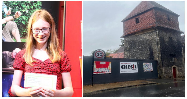 We were very pleased to take part in the art competition organised by the Chesil theatre to design an image for their hoardings whilst they had building work taking place. We were delighted to hear that Violet had won and her art work is being displayed - please do take a look as you walk or drive past.